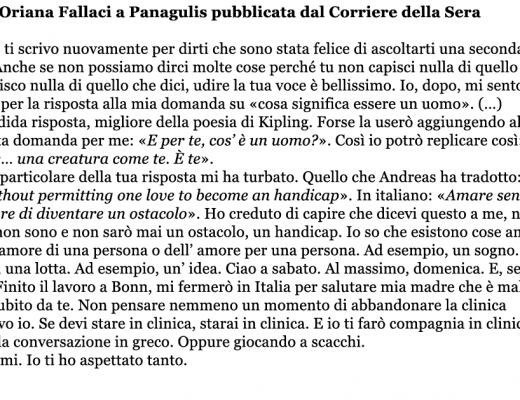 l’intensa lettera d’amore della Fallaci, penso la conosciate un po’ tutti. Nel rileggerla e metabolizzarla…